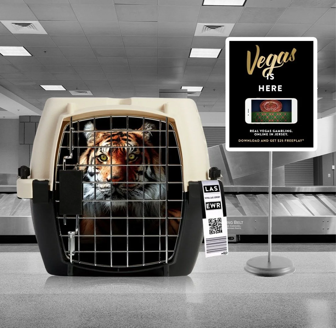 Residency shows would have to travel from Nevada’s biggest city to New Jersey’s biggest airport. So we dreamt up an awareness installation as if the famous Siegfried and Roy (and co) made the journey.