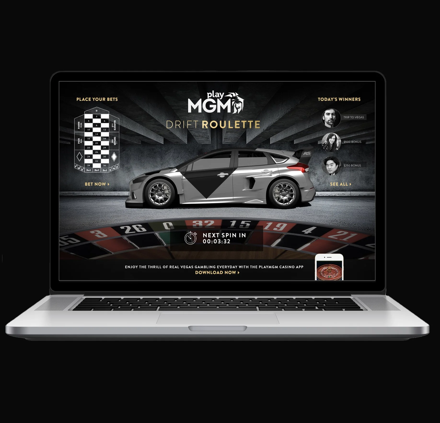Add Drift Team to a closed course with some drones and let the Drift Fans digitally watch and bet on the larger than life roulette spins.