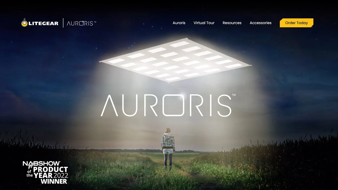 Our approach began with naming the product Auroris, a blend of “aurora" (as in the aurora borealis) and “Polaris," the bright white North Star, symbolizing the product's dual lighting functions—vivid color versatility and crisp, pure whites. To bring the brand to life, we designed a launch strategy centered on practical innovation and ease of use, key concerns for production crews. The website animation walkthrough focused on demonstrating Auroris' streamlined setup and breakdown process, showcasing how the product simplified workflows while delivering cutting-edge lighting capabilities. This emphasis on both innovation and functionality ensured the brand resonated with industry professionals and creatives alike.